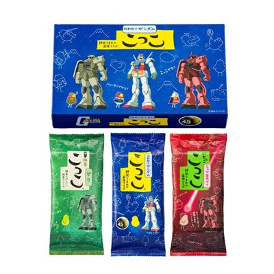 ギフト用に購入し、ガンダムパッケージが喜ばれました。3つの味が楽しめるのも良かったです。